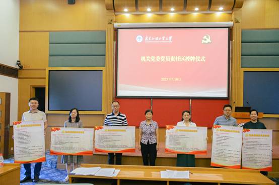 7月6日,机关党委在国际会议厅举行“强作风、办实事”活动推进情况交流会暨党员责任区授牌仪式,副校长王廷惠作讲话,学校党史学习教育第三巡回指导组成员,机关党委委员,支部书记、支部委员、党员代表,共建支部党员代表参加会议。